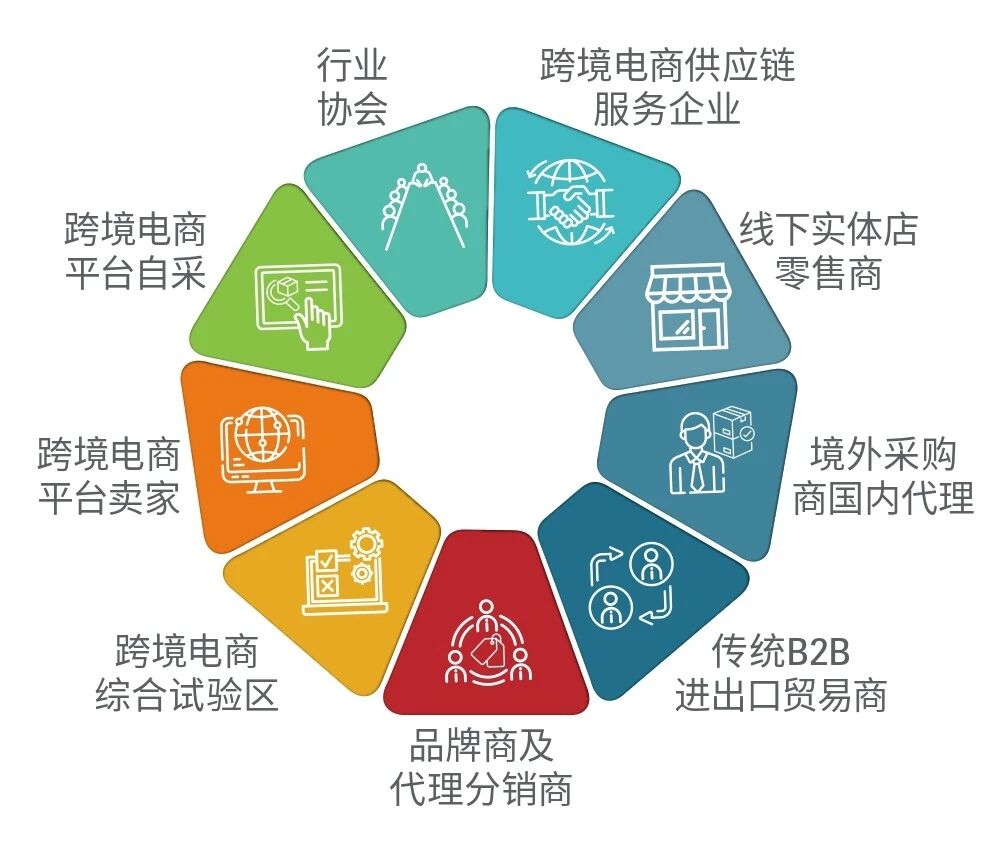 专业观众(涵盖跨境全产业链):跨境电商平台自采、跨境电商平台卖家、跨境电商综合试验区、品牌商及代理分销商、传统B2B进出口贸易商、境外采购商国内代理、线下实体店零售商、跨境电商供应链服务企业、行业协会。