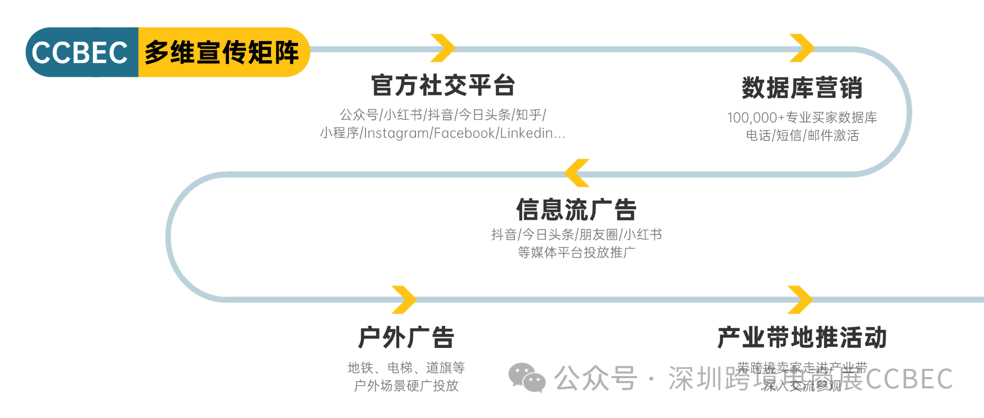 CCBEC为参展企业提供覆盖线上线下的多维度宣传矩阵,确保您的产品与服务精准触达潜在跨境卖家: